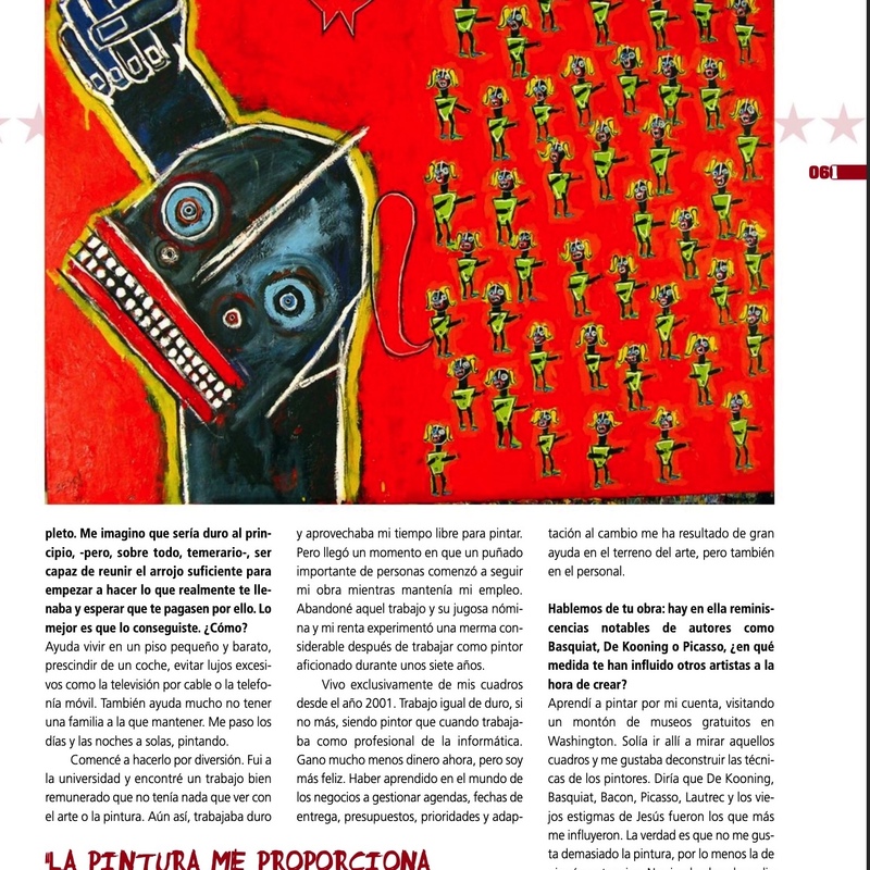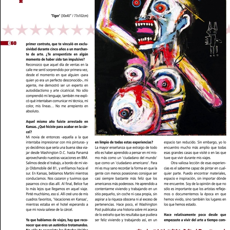 My exhibition in Barcelona, which coincided with my show at the Antic Teatre gallery, was perfect. They treated me wonderfully and made a great effort to promote my art in Europe. I was very successful in both Spain and France, and I’m extremely grateful. Very soon, in March, I’ll exhibit in Albi, in southern France, and I want to broaden my experience in Europe. I hope to paint more while I’m there to create the most intense work possible. In Spain, they treated me very well, and I don’t want to let anyone down.